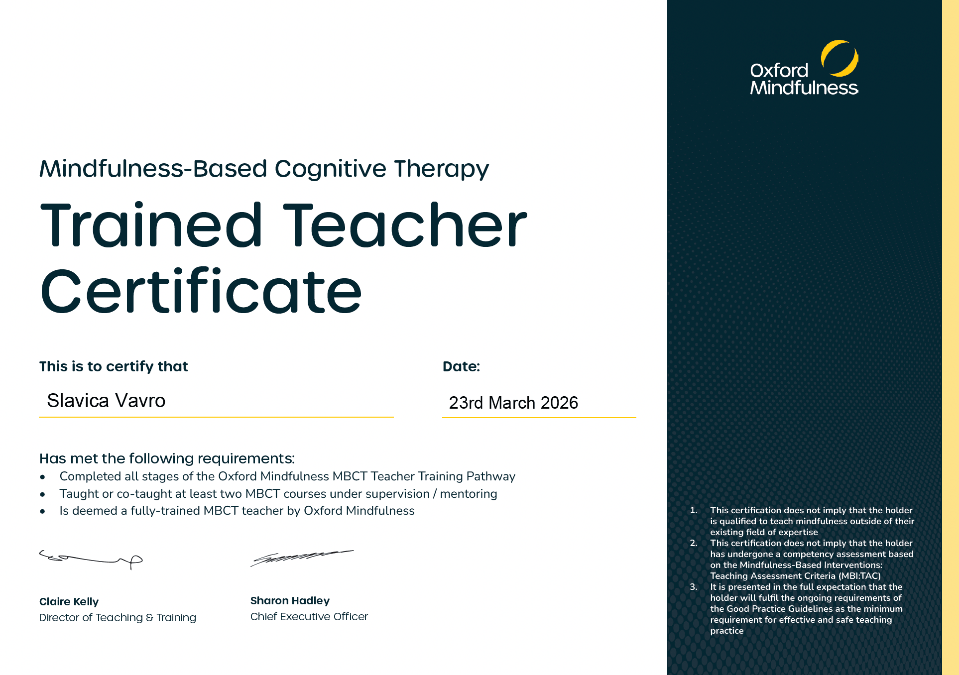 Certificirani Mindfulness učitelj (Oxford Mindfulness Foundation)